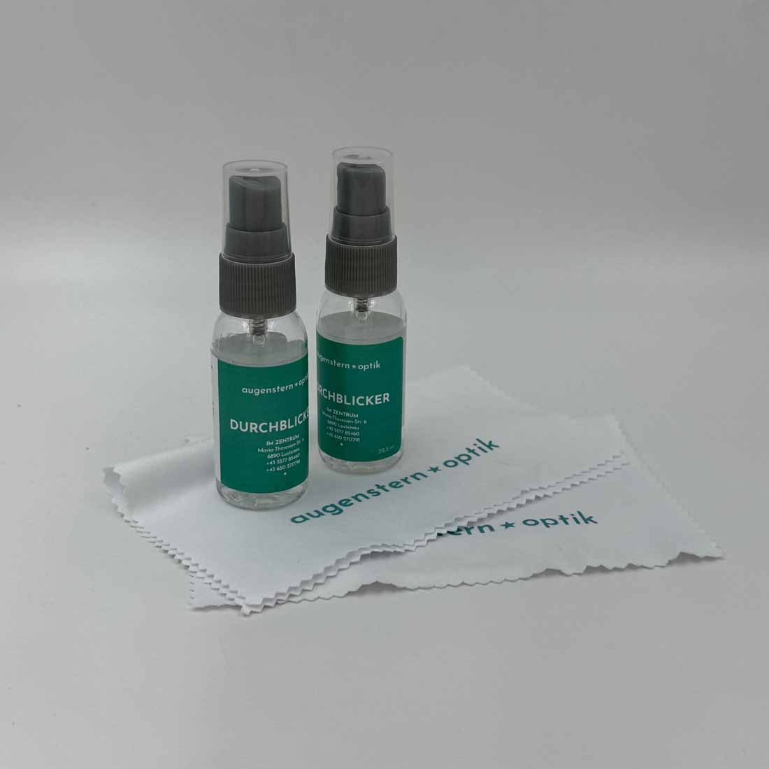 Alternativ: Sprühen Sie Reinigungslösung auf ein Mikrofasertuch und nicht direkt auf die Gläser – und reinigen Sie dann mit kreisenden Bewegungen.